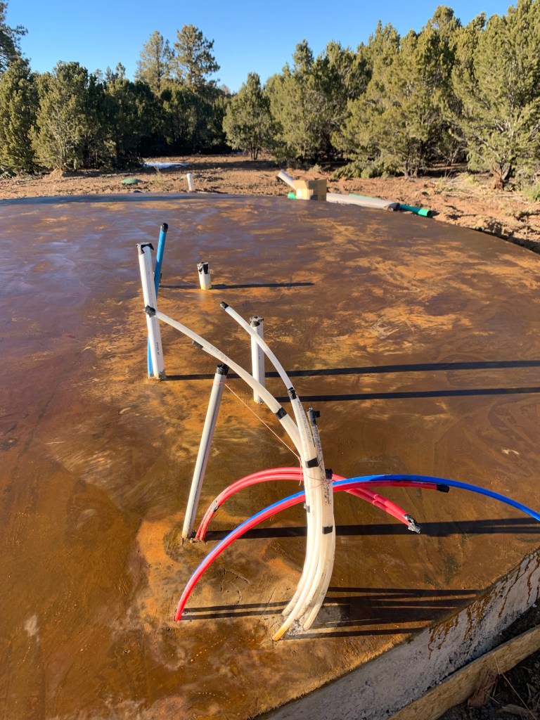 Water update: Our water pump is installed in the cistern. Our water pressure tank needs to be hooked up sometime soon. It’s been sitting in the shipping container for awhile. And the plumber is coming to deliver our hot water heater this week. That will go in the yurt hidden in the bathroom behind a small wall. We also just purchased an awesome water filter system that arrived the other day. Our water is almost like a golden color out of the well. So we definitely needed a good filter. It also has a water conditioner which will help with the hard water we have here in CO.