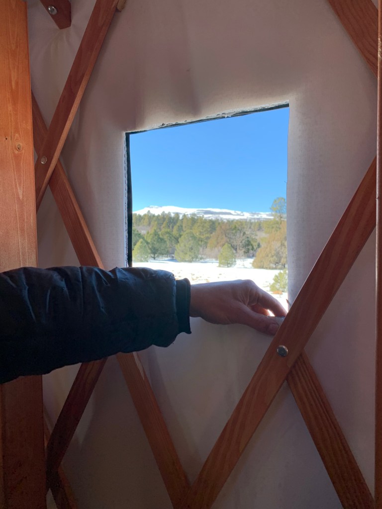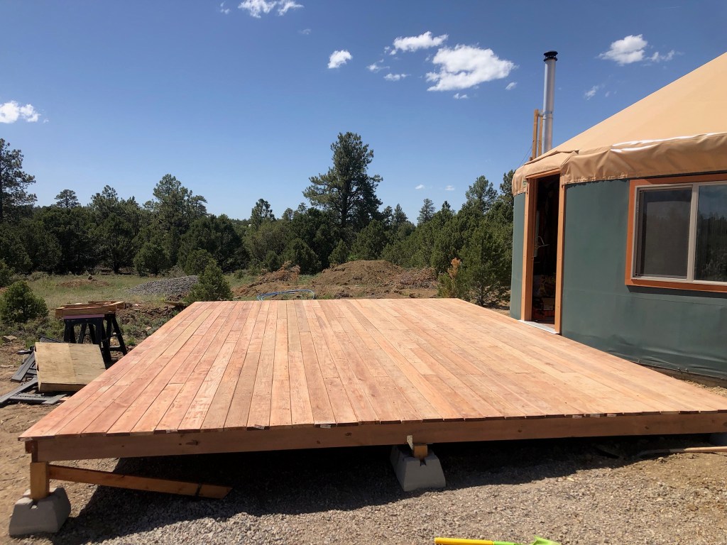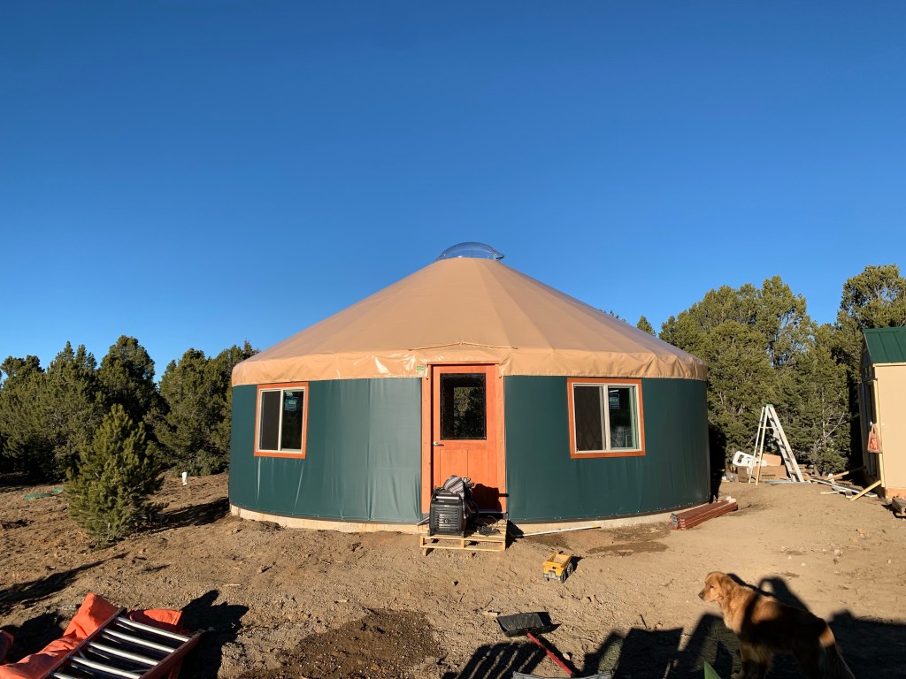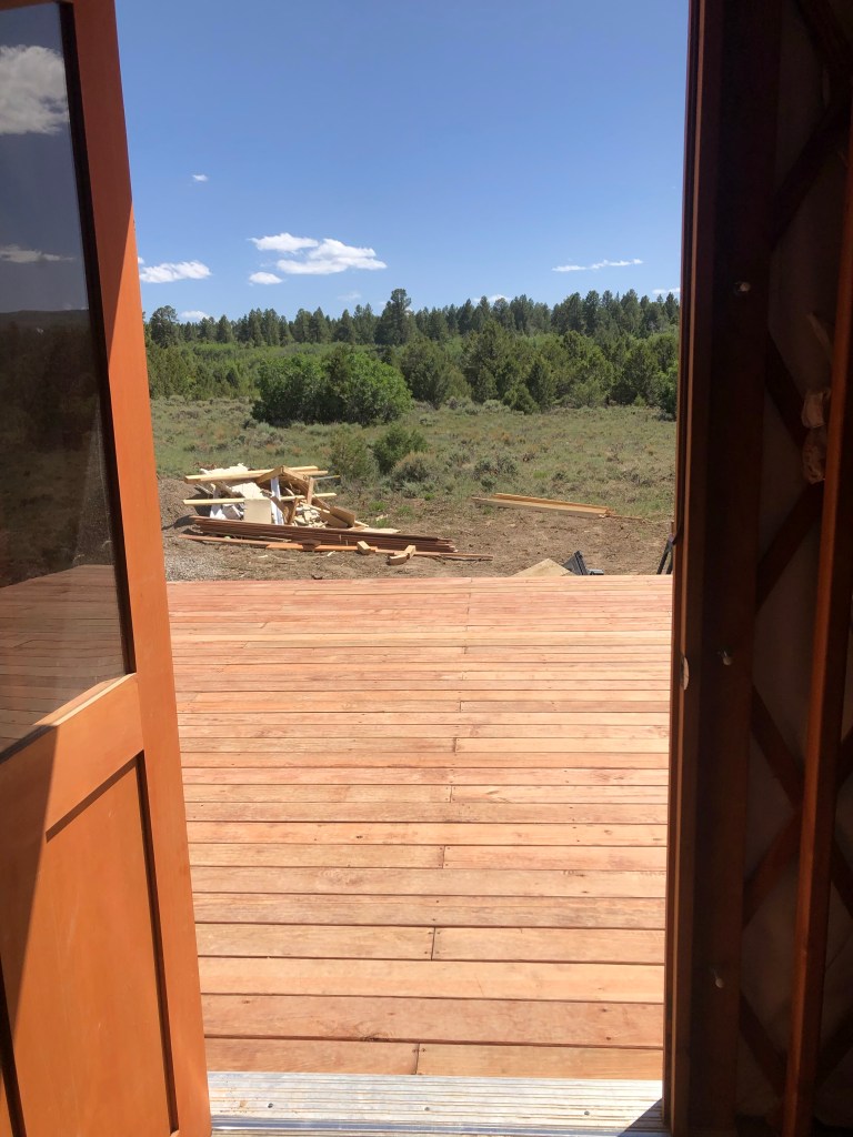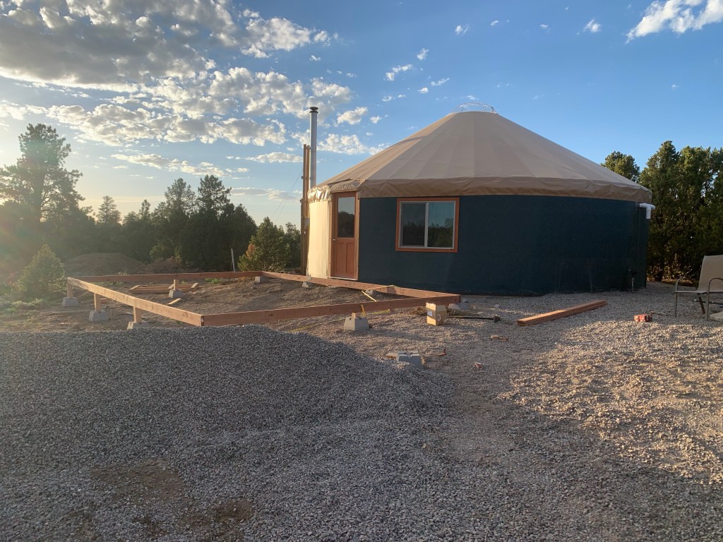 The only thing I wish we’d done differently is order more windows. We have 4, but I’d like one more on each side of the front half of the yurt so you get a good view of the mountains. I think we may add some after we get the inside finished, but for now, we’re going to focus on the interior walls and loft. P