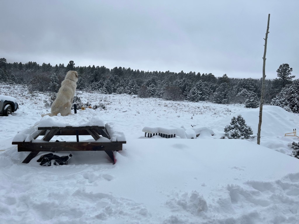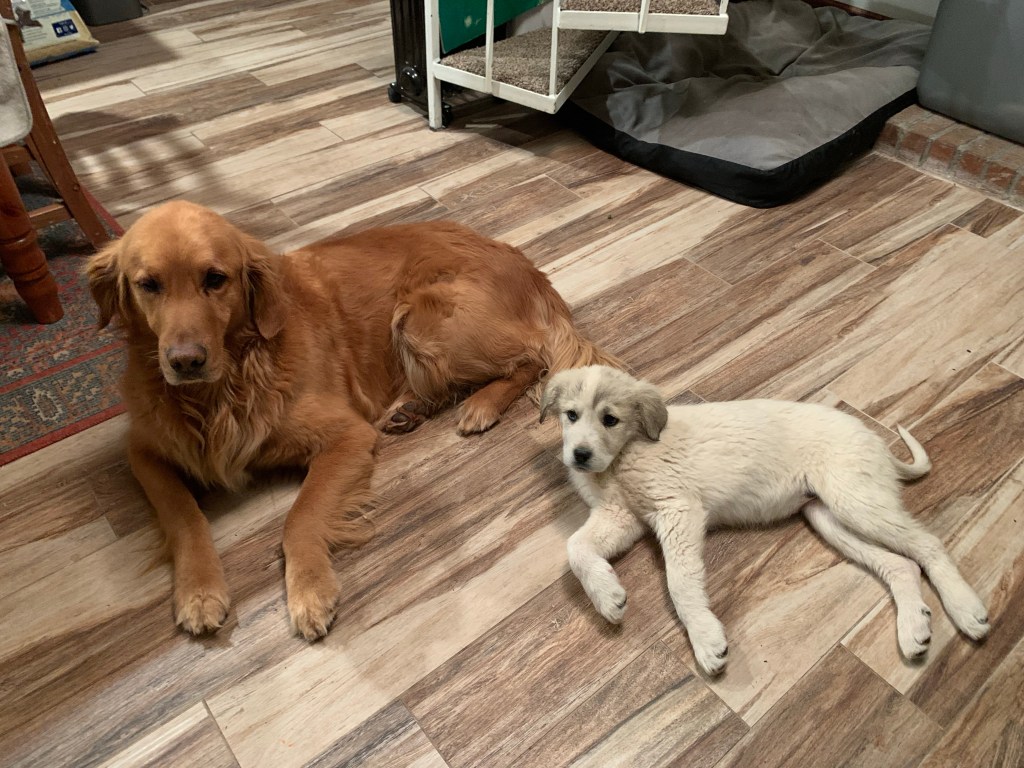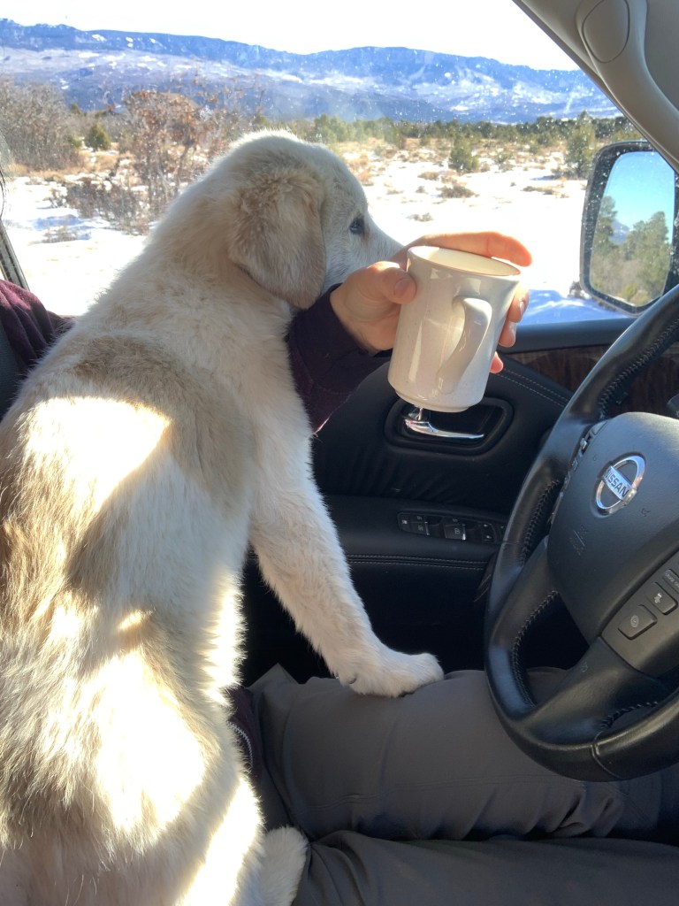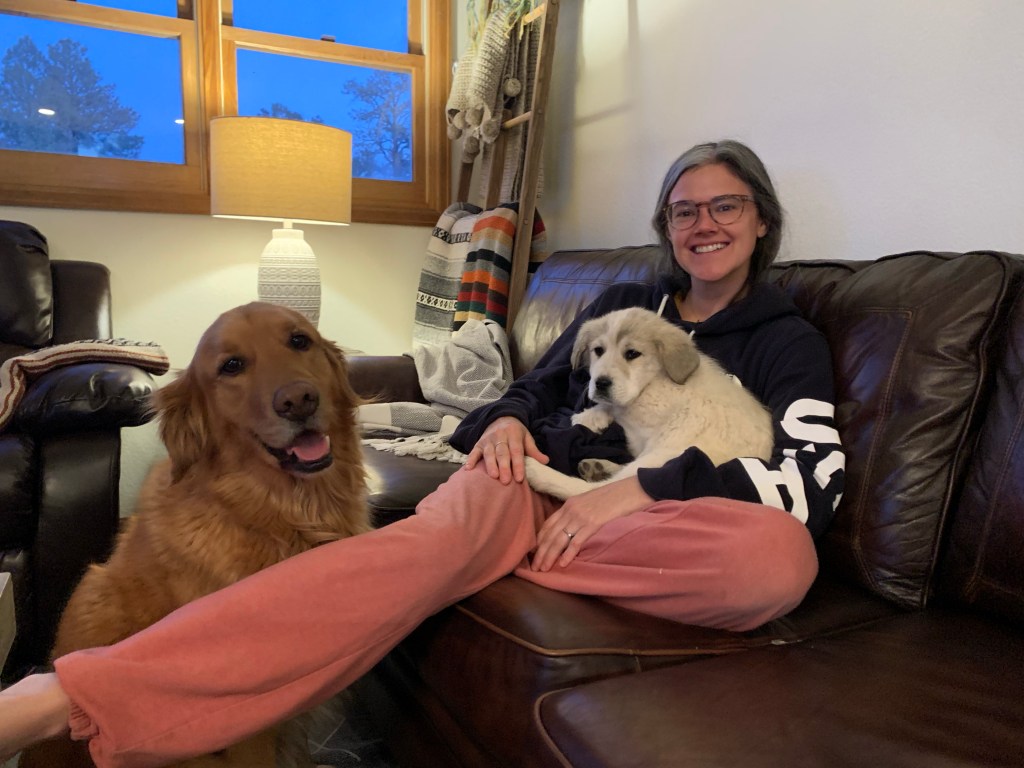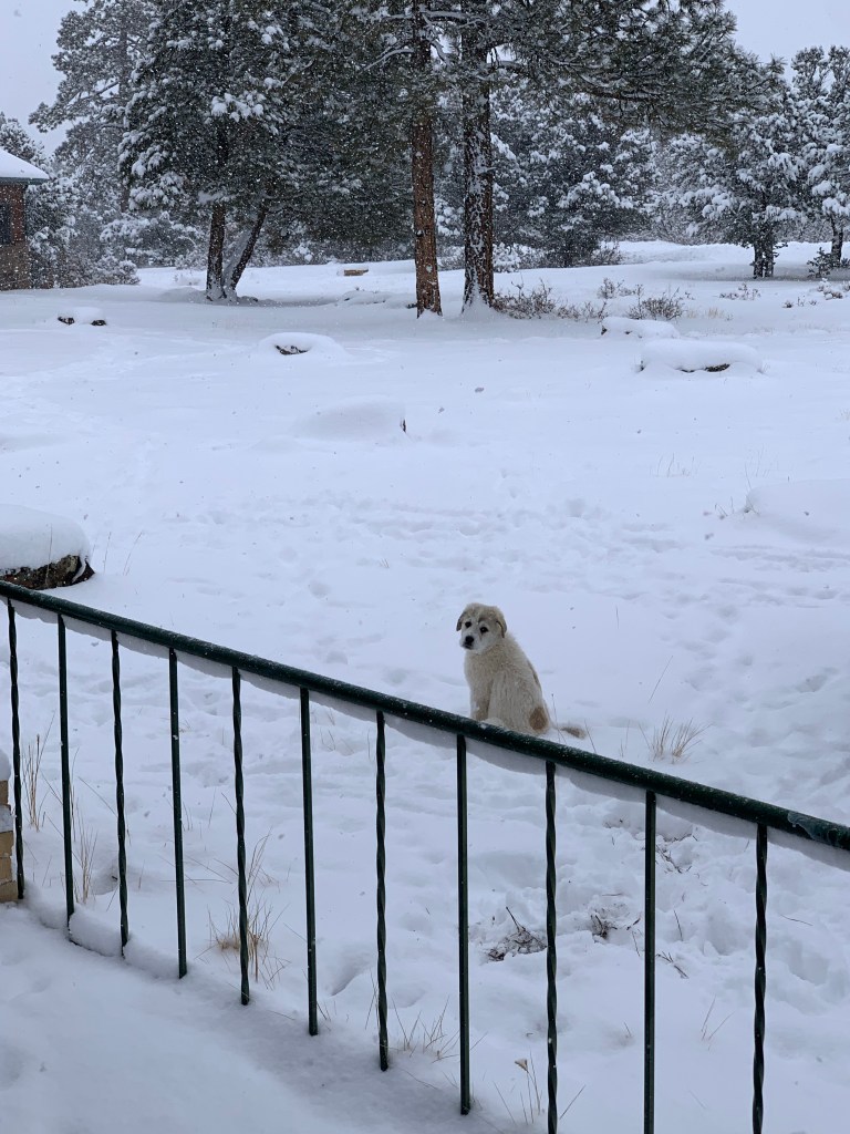 We have a new addition to the family, and it’s a girl! Her name is Mochi and she’s a Colorado Mountain Dog, a mix of livestock guardian dogs (she is specifically Great Pyrenees/Anatolian Shepherd).