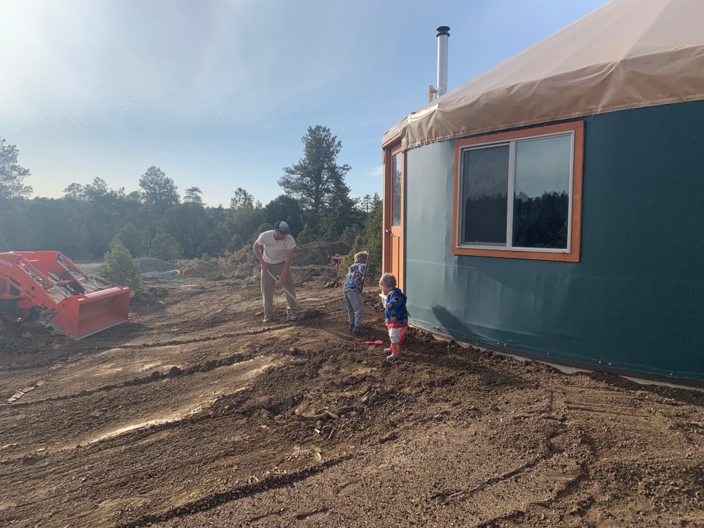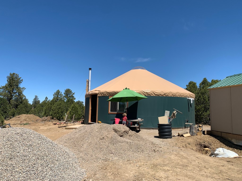 And now for the yurt pitch videos. The pitch took about 1.5 days. We hired the pitch crew at Colorado Yurt Company because we didn’t think we’d be able to get enough people to help for a few consecutive days. Also, we still have yet to find a babysitter in this town, and no way could we get this done with the two dudes running around. So grateful we were able to hire a pitch crew because it gave us the chance to take a break and watch! Enjoy 😊