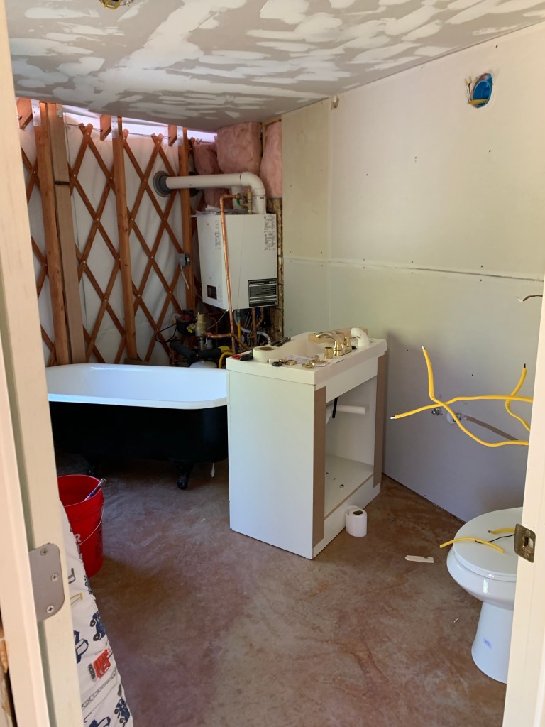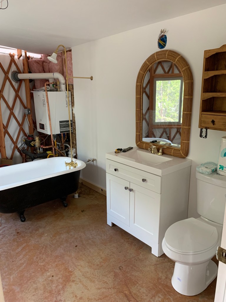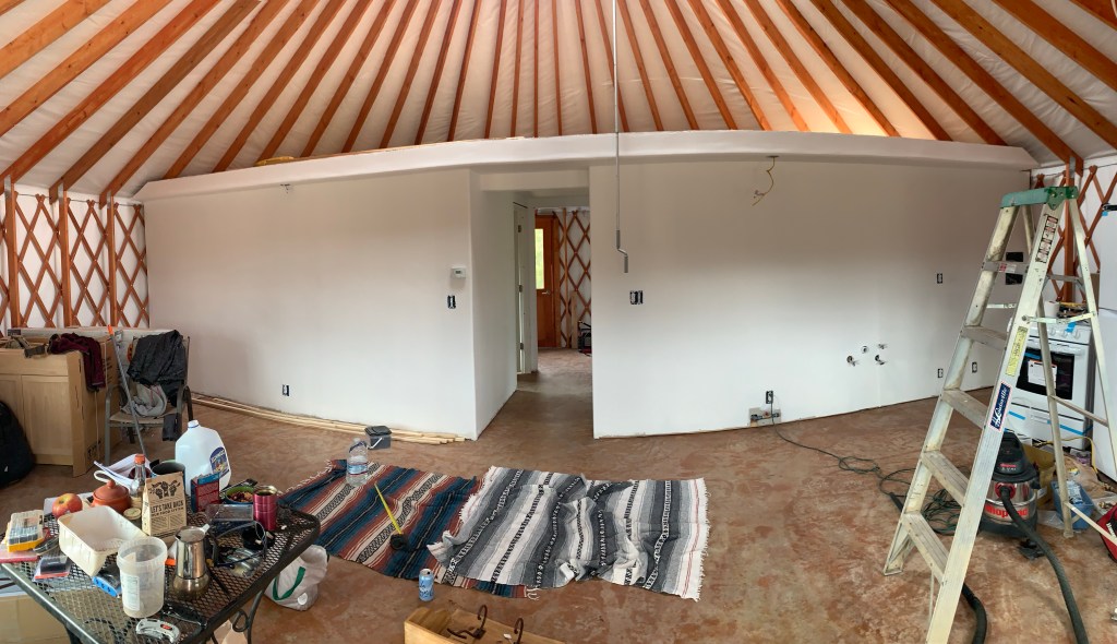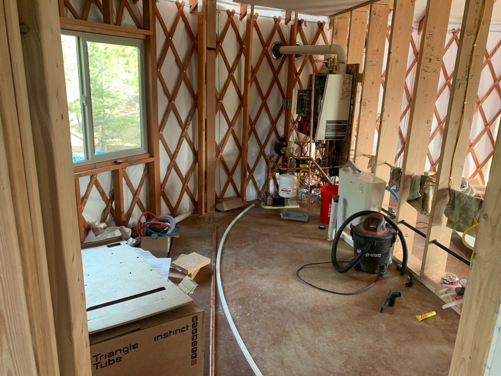 Our goal is to move into the yurt June 22nd, regardless of what’s outstanding (obviously we at least need to have the bathroom and kitchen water running). I originally wanted to wait to move in until it was 100% done and decorated, but there is so much to do and it’s really hard getting stuff done with the boys around. Like really hard. So we’re just moving in a few weeks and finishing up work while we’re living there. Ill give a quick update below.