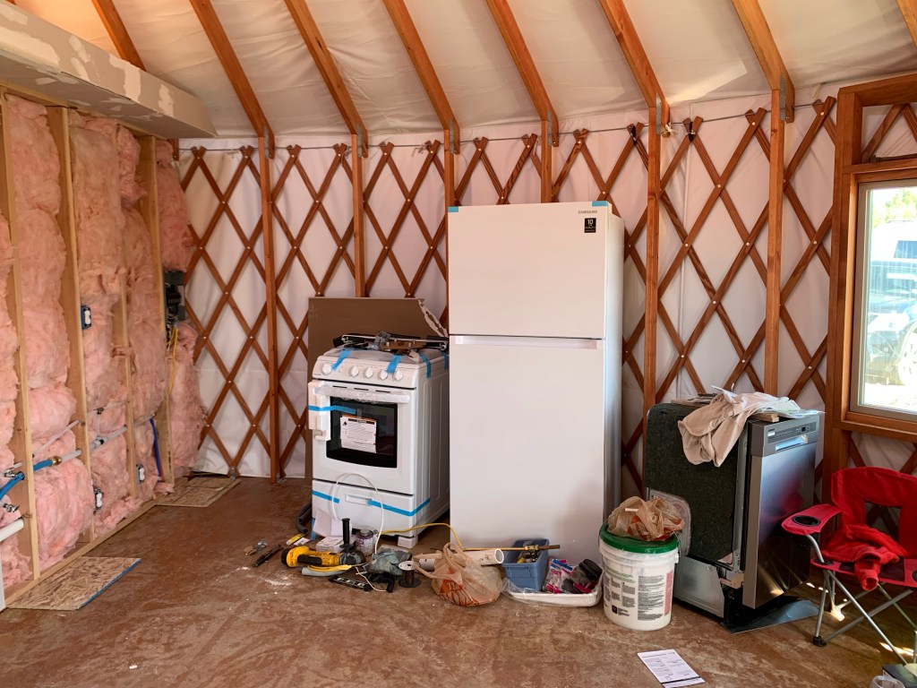 (We are officially moved into the yurt as of last week, but here is the update prior to that.)
