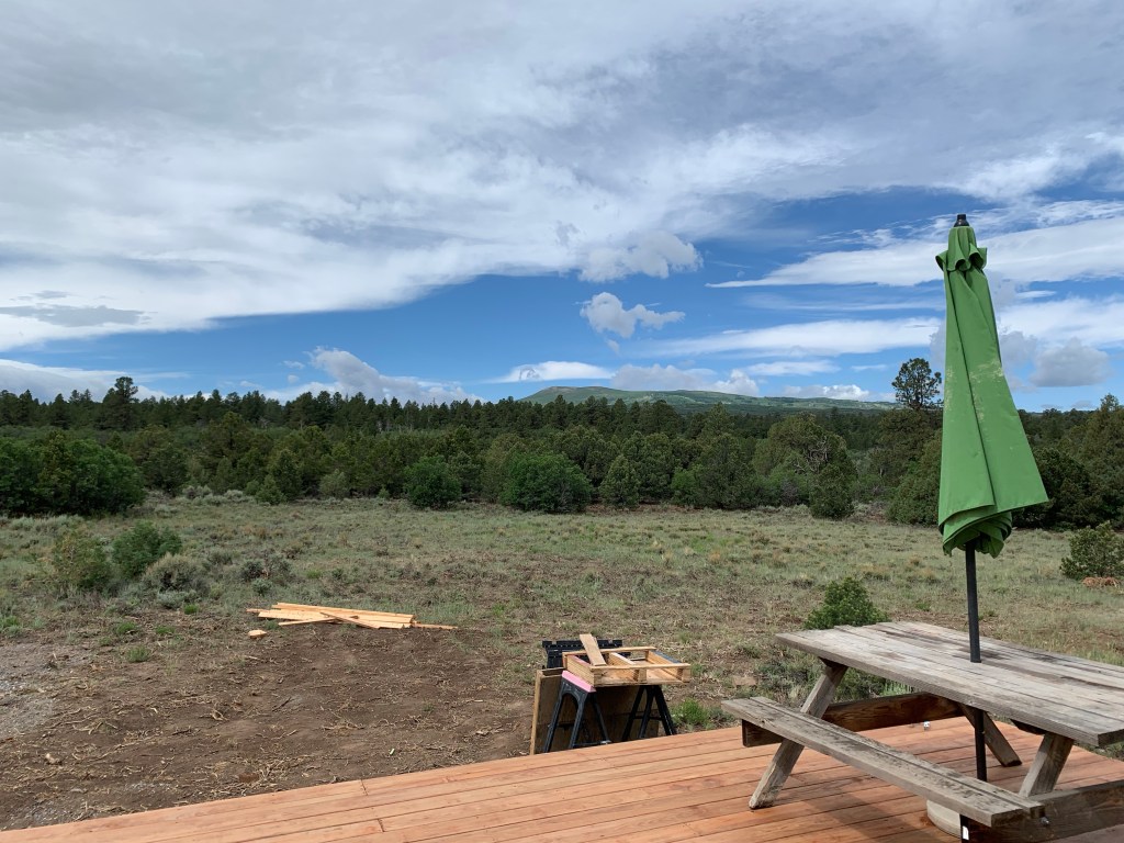 Patio: We we’re going to do our patio/deck with Trex (the manufactured wood that almost has a lining over it that lasts forever). But because the world is going down the pooper and there are supply issues everywhere, we can’t get the Trex materials anytime soon. So wood it is! Wood is a third of the price, so I guess it’s not too bad. Je started the patio today. We’re doing a floating patio (recently discovered that’s an actual name), with no railing. So you’ll step down into the yard from the patio, and then we’ll put up a fence that closes in part of the yard and the patio. This way, the boys can play on the patio or yard and be contained in a fence.