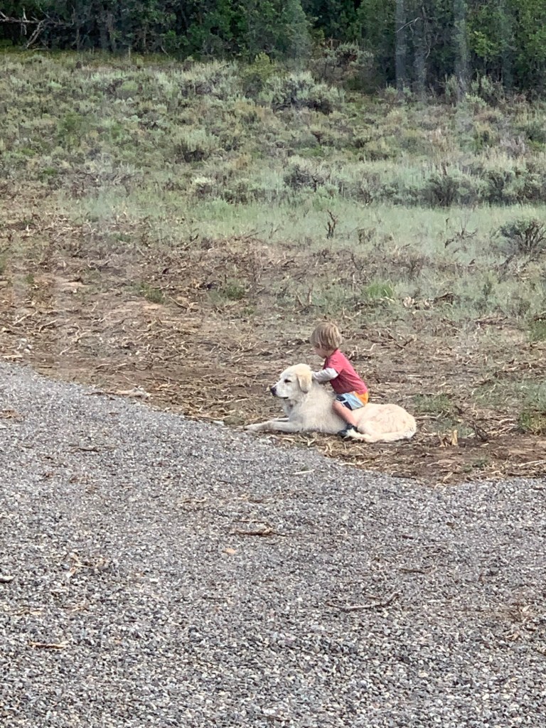 Although we found and bought her quickly, we’ve actually been talking about getting a livestock guardian dog for awhile now. No, we don’t have any livestock yet. But we wanted a big dog that would follow the boys around when they’re outside and be their protector. We never leave them unattended, but it’s a big piece of property and there are big predators. So I feel much better knowing the kids have a dog companion.