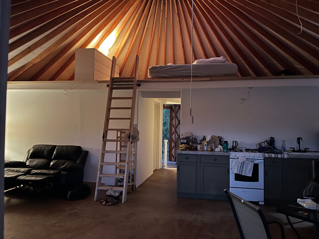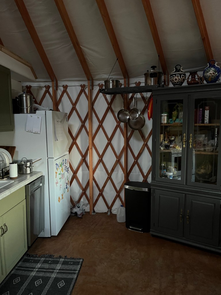 Let’s talk about the WIND. The gusts of wind around here can get crazy- we’ve probably had 50 mph gusts on some nights. And when it’s windy, you basically don’t sleep (well, the boys do but not Je or I). Since the yurt isn’t as insulated as a house, you hear the wind as if you’re outside. I’ve almost completely gotten over my fear of the yurt blowing over in the night so that’s good! And luckily it’s only windy like that a few times a month. But I’d say that’s the only downfall of living in the yurt- the rest is great!