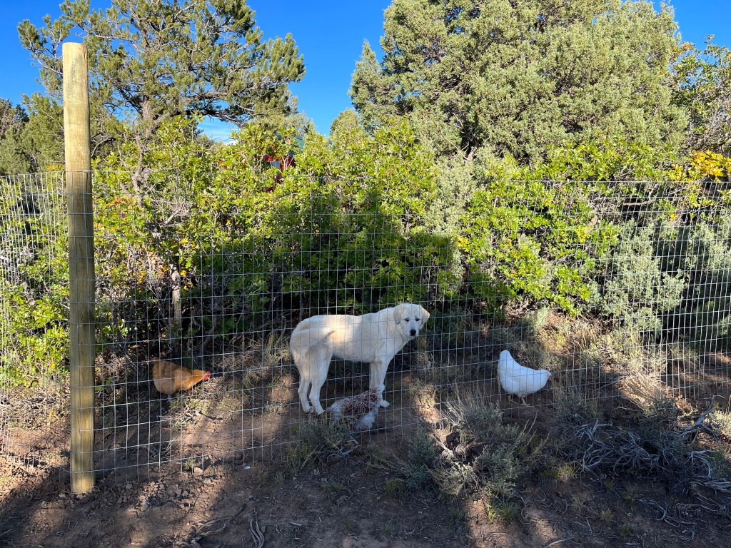 Mochi was born outside and lived fully outdoors until she became part of our family. She lived on a small farm an hour north of us with chickens, sheep and goats. They also have big predators there, but their LGDs were always on patrol. And I don’t believe they had any livestock losses from big predators because of that.