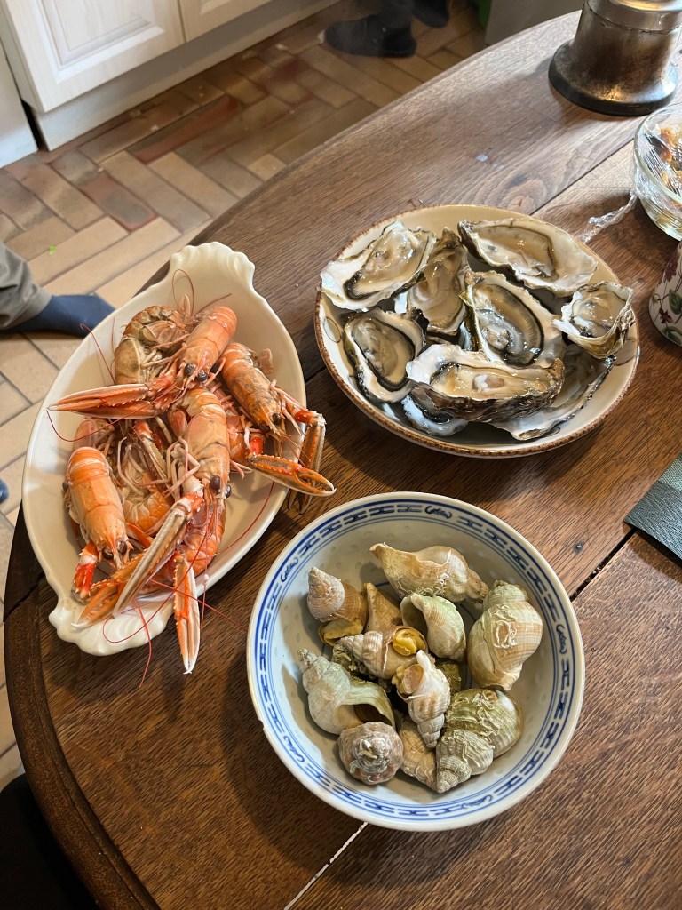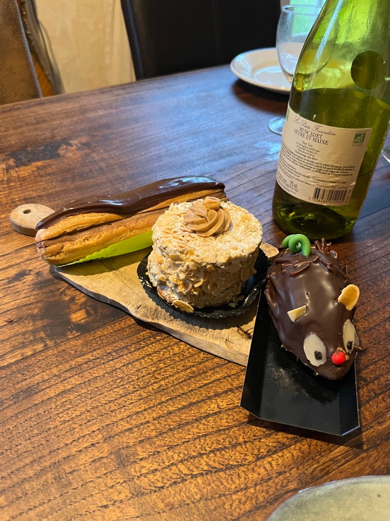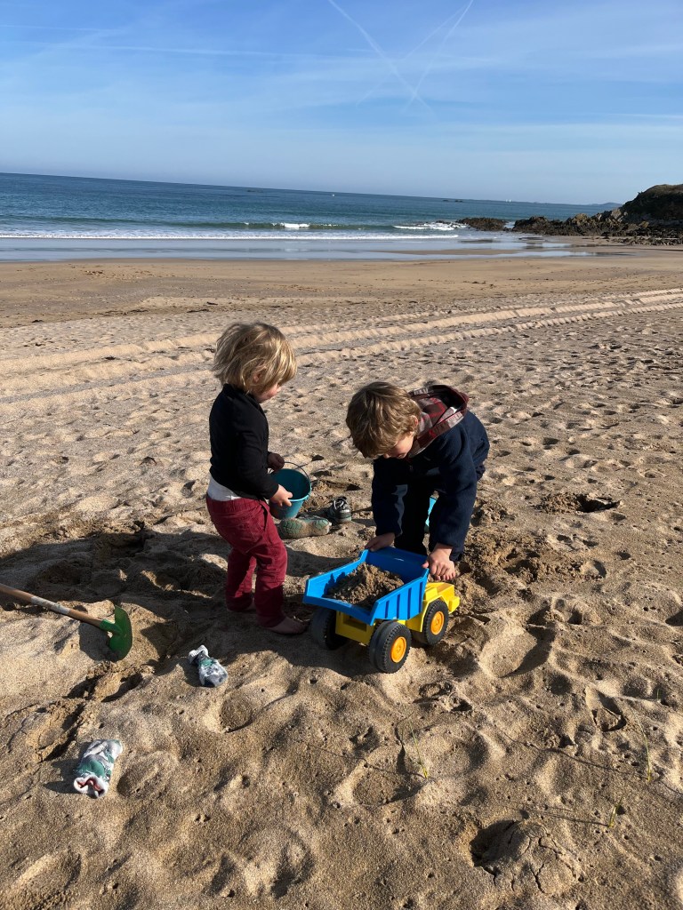 Our favorite beach 5 minutes from the house.Seafood overload. I think we had seafood 6 days a week.Date night! The top plate is called cafe gourmand, or greedy coffee. It’s a coffee with a side of a few cakes/desserts. Whaaat. Playing at grand-pères houseThe boys love shovels! No matter where they are. Here they’re digging for big worms under the sand. The sea up here has a large tide coefficient meaning the change in tide is extreme. When the tide goes out, it reveals all these cool rock pools on the beach. The boys love playing in these. The drippings from the rotisserie chicken are falling on potatoes. We didn’t get a chance to try these, but it’s a genius idea. Gâteau galore! Paddling in the tide poolsMore shovels, pails and of course, “brother dump truck”.Just a simple afternoon snack The chickens at the house have an amazing chicken run with so much grass and space to roam. Typical day in BrittanyEaster chocolates at the patisserie! We celebrated Easter a week early so we could celebrate in France. The Easter bunny brought the boys a chocolate stegosaurus.Tête de chien- path along the sea! The coast is so wild here! Every beach I’ve seen is beautiful, but nothing compares to these beaches (in my opinion). It’s the only beach I’ve been too that isn’t covered with houses/hotels and completely destroyed by civilization. We contemplated spending our last day in Paris, going to the Eiffel tour and other tourist sites. But we decided spending every last second at the beach was better- and it was! Sorry Paris, you can’t beat this.
