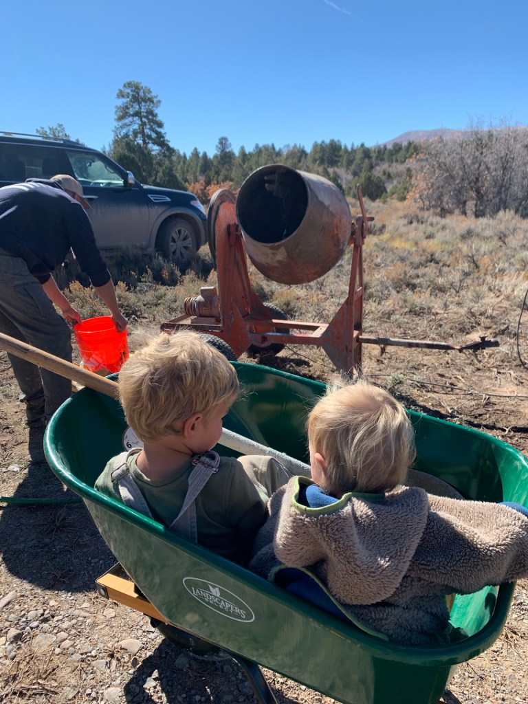 Our concrete pour was early November and it was so exciting watching the floor of our home get built! The boys and I picked up burritos for everyone helping and just sat watching the magic happen all day. We stuck around until the end to make sure to get our handprints in the slab before it dried.