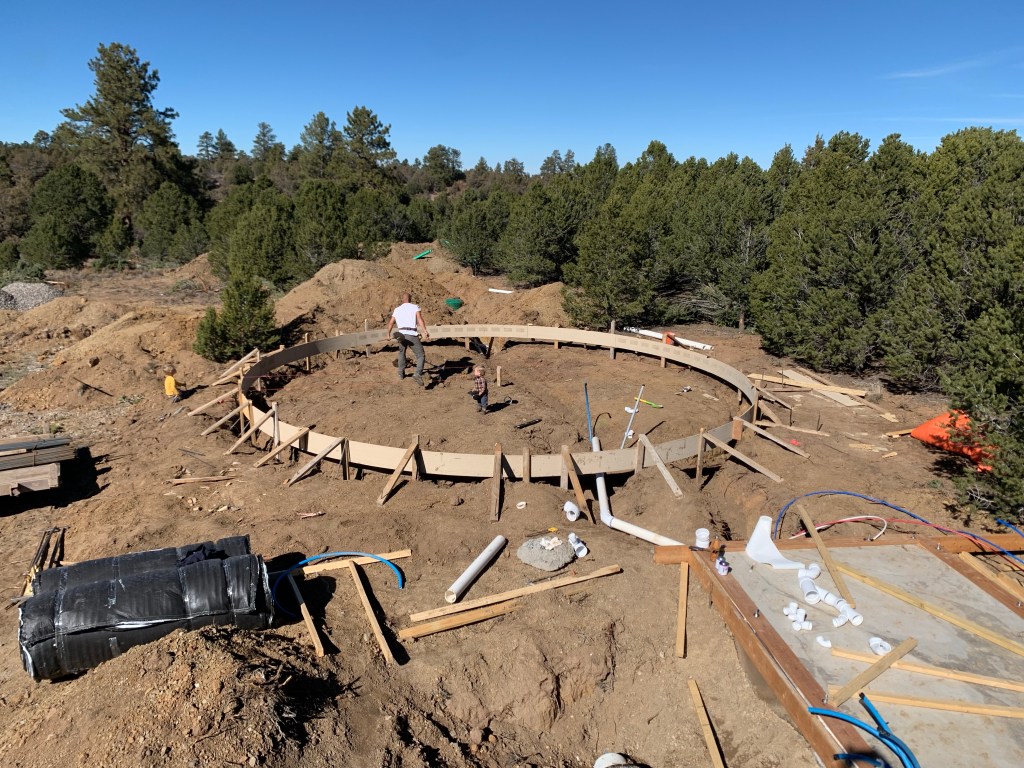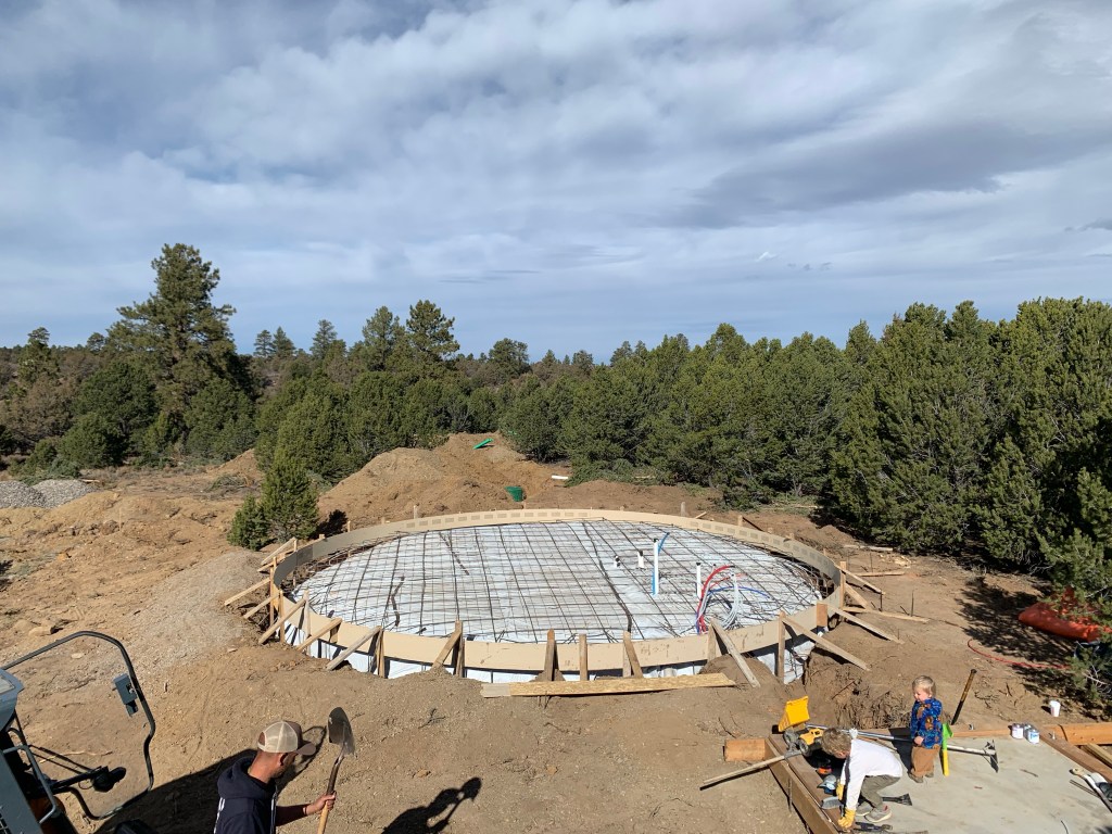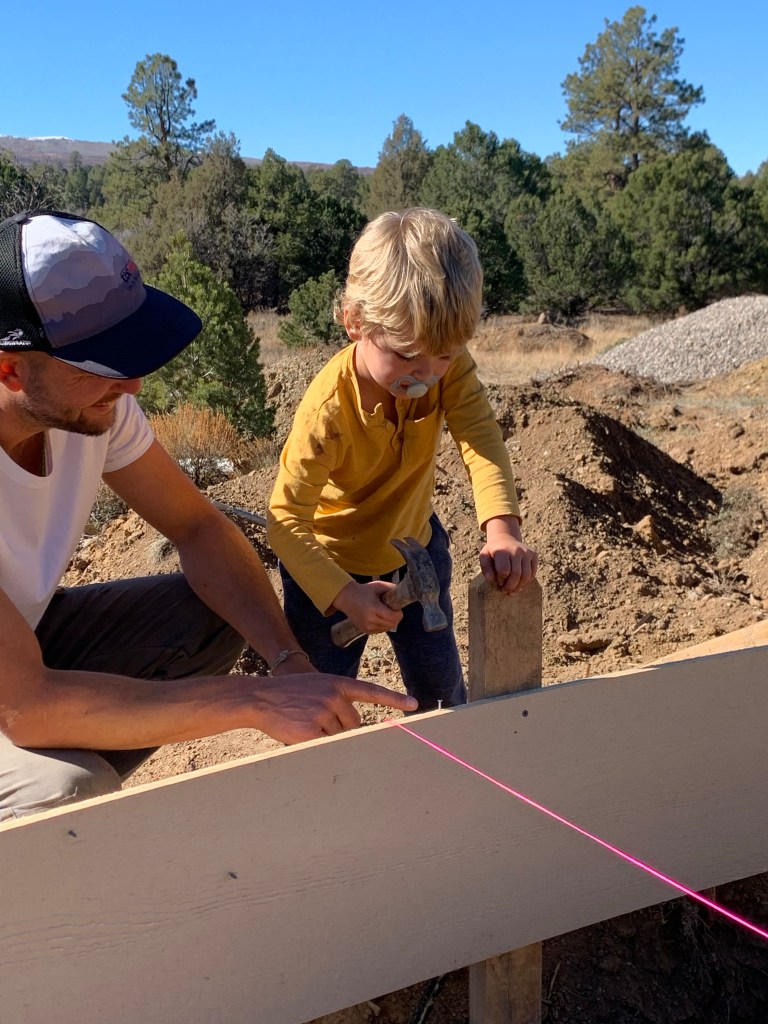 We started working on the concrete slab in October, working on digging a trench around and getting our circular bender board set up for the form. I think we did the form 2-3x. And Je asked me multiple times during the process WHY we decided to do a circle and not a rectangle for the house. The circle was a pain in the a. Just to give you an example, the way the trench and bender board was positioned, you could barely fit in the trench to shovel out the dirt that kept falling in. And Je had also screwed the two bender boards together, so while trying to squeeze in the trench with a shovel, you were dodging screws sticking out. Super kid friendly. But I will say, the best tool I found to help dig out the trench was Hugo’s plastic beach shovel. Whatever gets the job done…